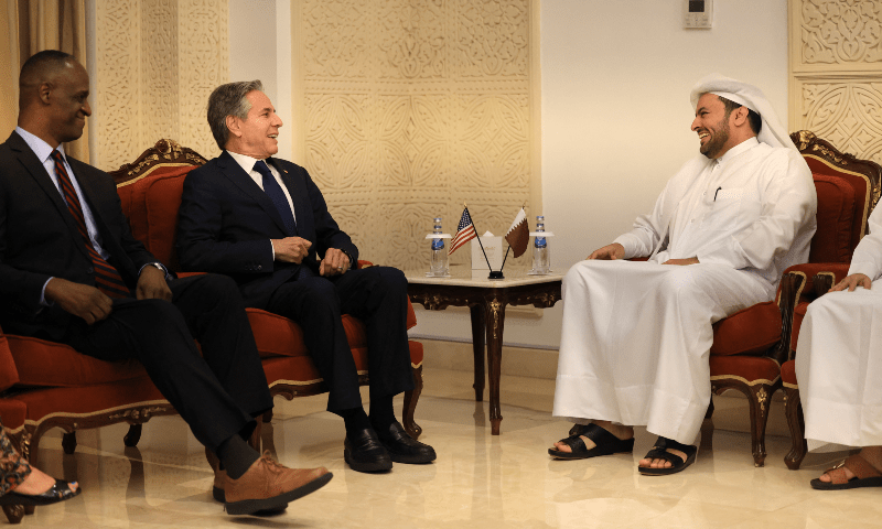The US secretary of state, on his ninth regional visit since the 10-month-old Israel-Hamas war began, made a brief stop in mediator Qatar but was unable to meet its emir.